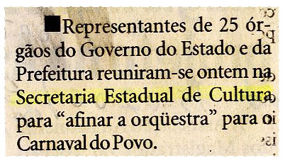 Governo do Estado, Prefeitura, Sec, Carnaval