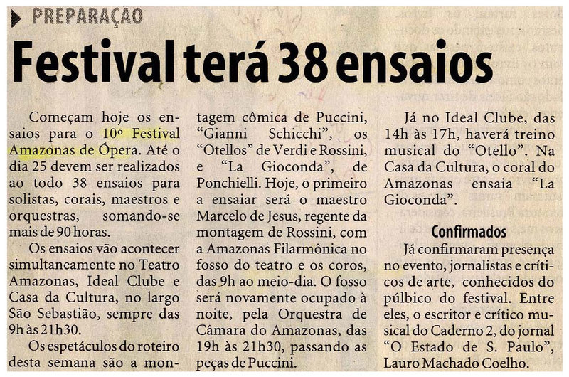 Festival Amazonas de Ópera, Ensaio, Teatro Amazonas, Ideal Clube, Casa da Cultura, Largo São Sebastião, Espetáculo