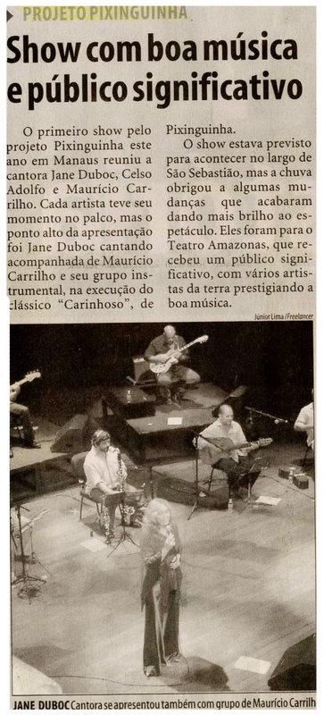 Projeto Pixinguinha, Show, Música, Jane Duboc, Celso Adolfo, Maurício Carrilho, Largo São Sebastião, Teatro Amazonas