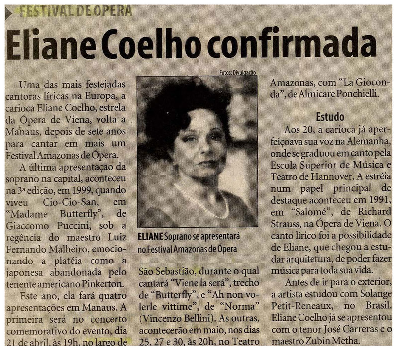 Festival de Ópera, Eliane Coelho, Luiz Fernanado Malheiro, Largo São Sebastião, Teatro Amazonas, Concerto