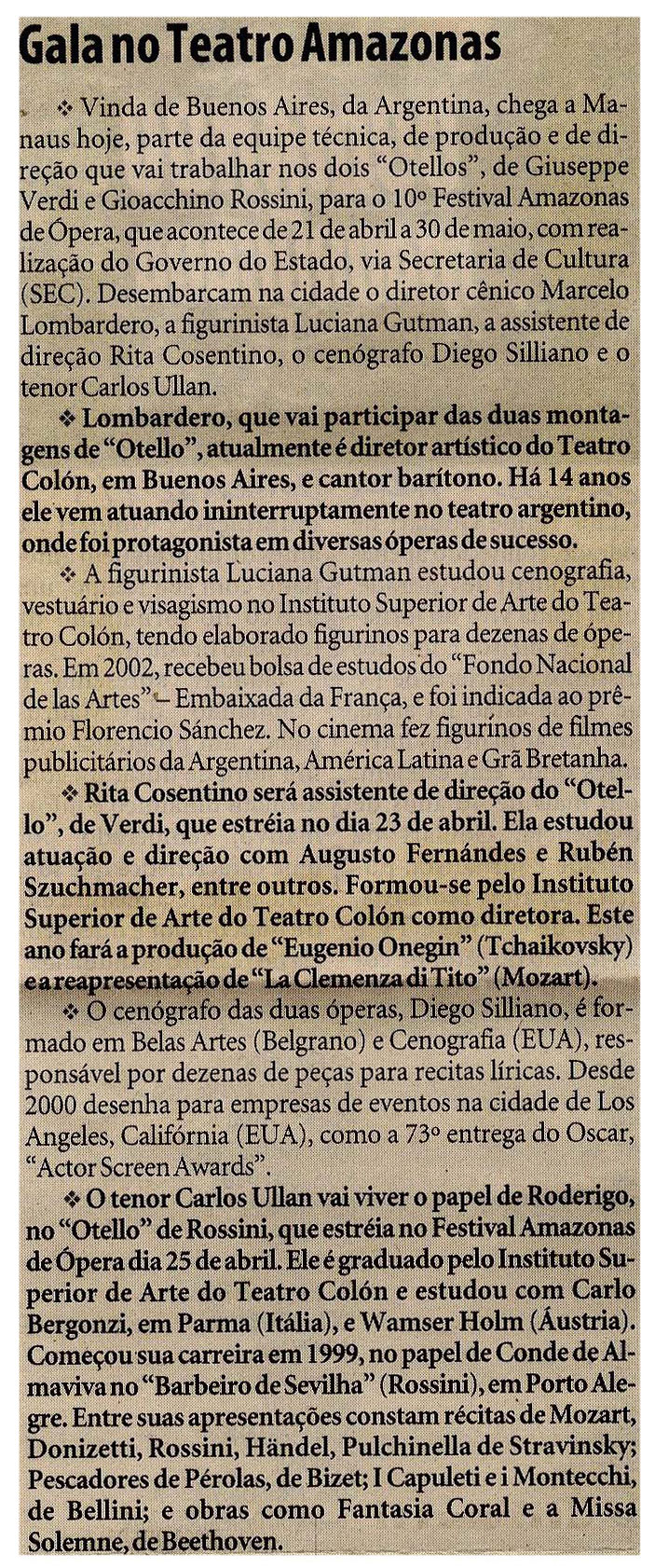 Teatro Amazonas, Buenos Aires, Festival de Ópera, Equipe Técnica
