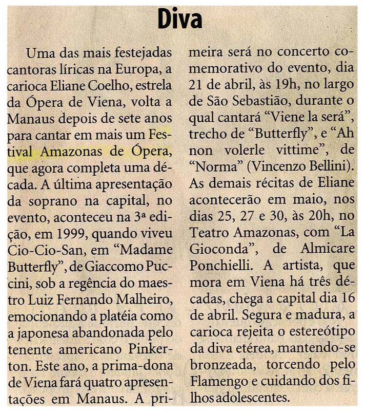 Eliane Coelho, Festival, Ópera, Apresentação, Concerto, Largo São Sebastião, Teatro Amazonas
