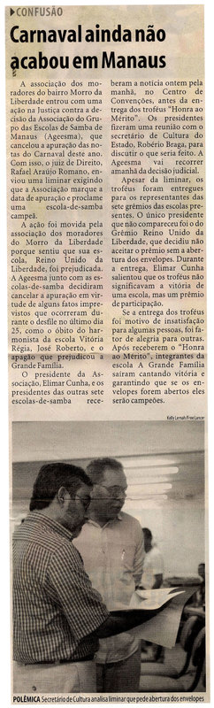Carnaval, Polêmica, Ageesma, Morro da Liberdade, Reino Unido, A Grande Família