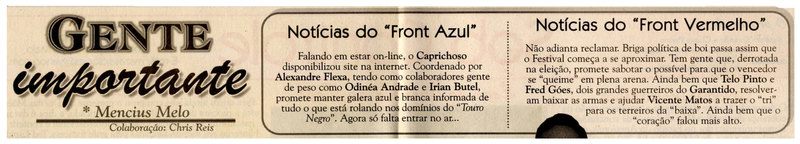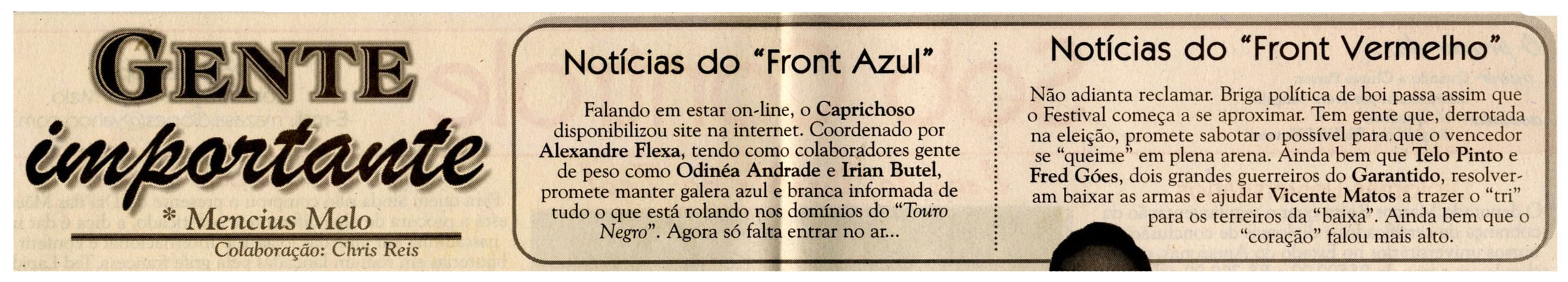 Caprichoso, Alexandre Flexa, Odinéia Andrade, Irian Butel, Garantido, Telo Pinto, Fred Góes, Vicente Matos