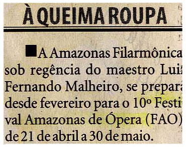 Luiz Fernanado Malheiro, Festival de Ópera, Amazonas Filarmônica