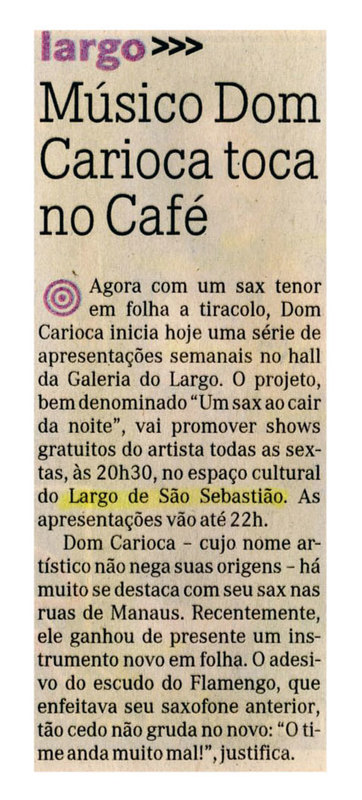 Dom Carioca, Largo São Sebastião, Galeria do Largo, Shows
