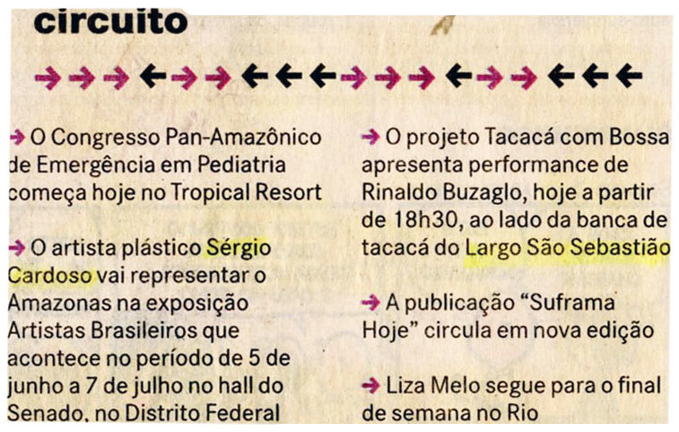 Congresso Pan Amazônico, Sérgio Cardoso, Exposição, Projeto Tacacá com Bossa, Largo São Sebastião, Suframa, Liza Melo