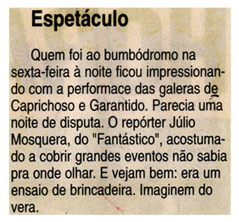 Espetáculo, Bumbódromo, Caprichoso, Garantido, Júlio Mosquera