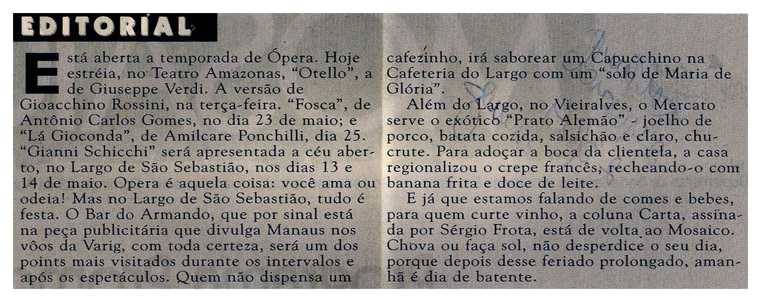 Ópera, Teatro Amazonas, Largo São Sebastião, Bar do Armando