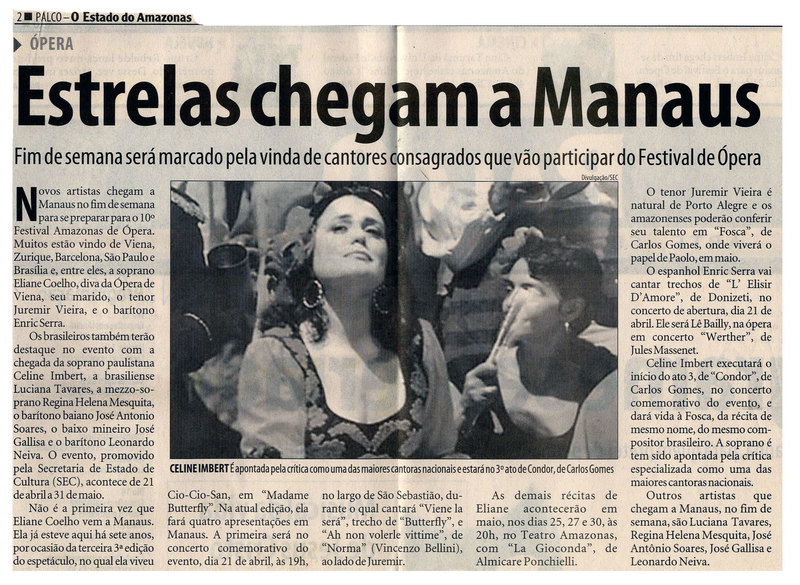 Festival de Ópera, Sec, Teatro Amazonas, Cantores, Celine Imbert, Eliane Coelho