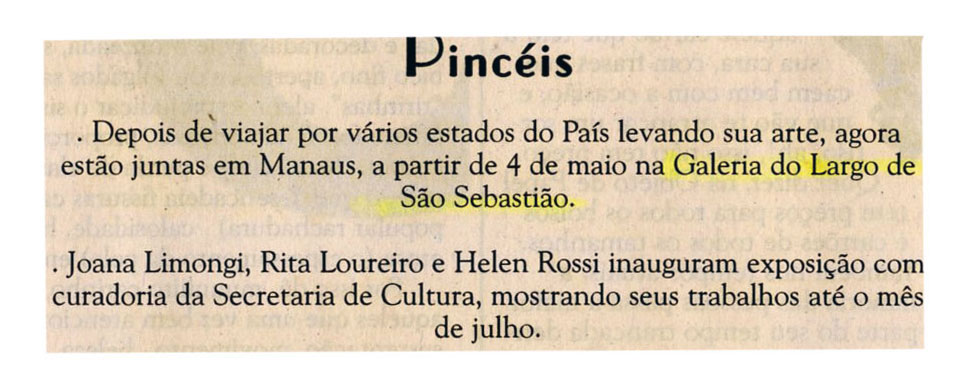 Galeria do Largo, Sec, Joana Limongi, Rita Loureiro, Helen Rossi, Exposição
