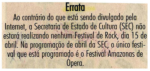 Errata, Sec, Festival de Rock, Programação, Festival de Ópera