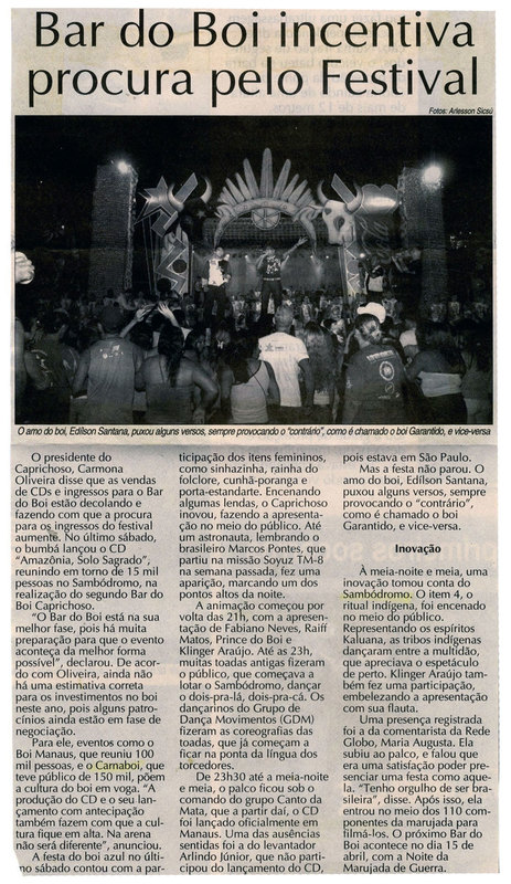 Bar do Boi, Caprichoso, Carmona Oliveira, Sambódromo, Edílson Santana