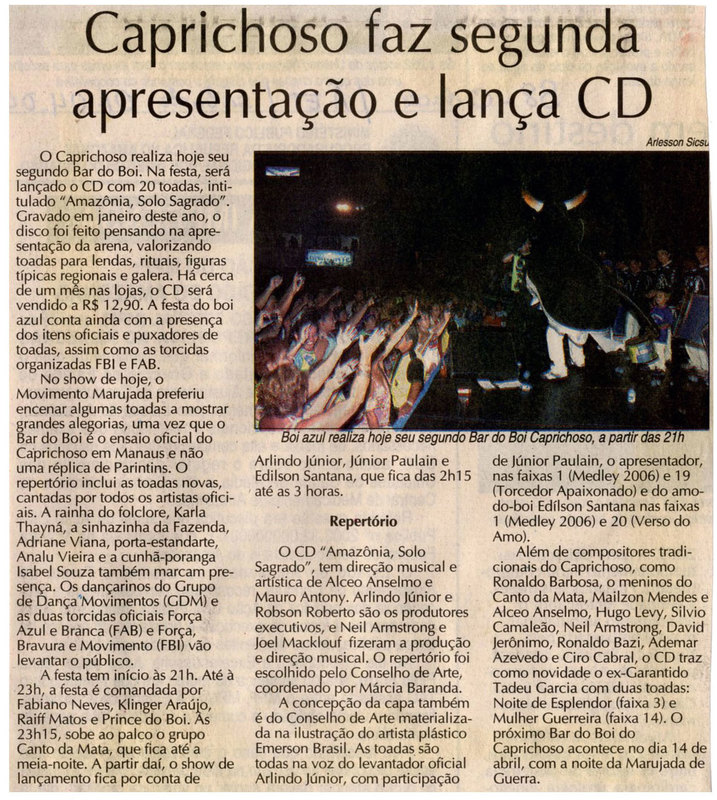 Caprichoso Faz Segunda Apresentação e Lança Cd