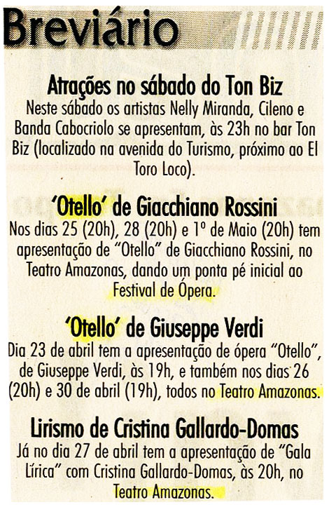 Bar Ton Biz, Teatro Amazonas, Otello, Apresentação