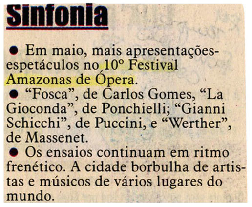 Festival de Ópera, Ensaios, Apresentação, Espetáculos