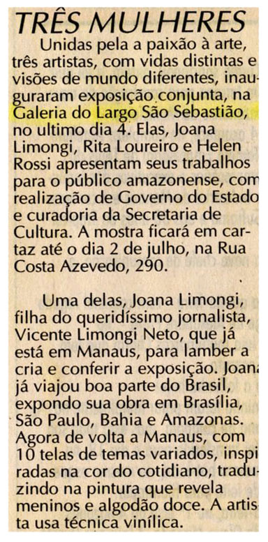 Galeria do Largo, Joana Limongi, Rita Loureira, Helen Rossi, Exposição
