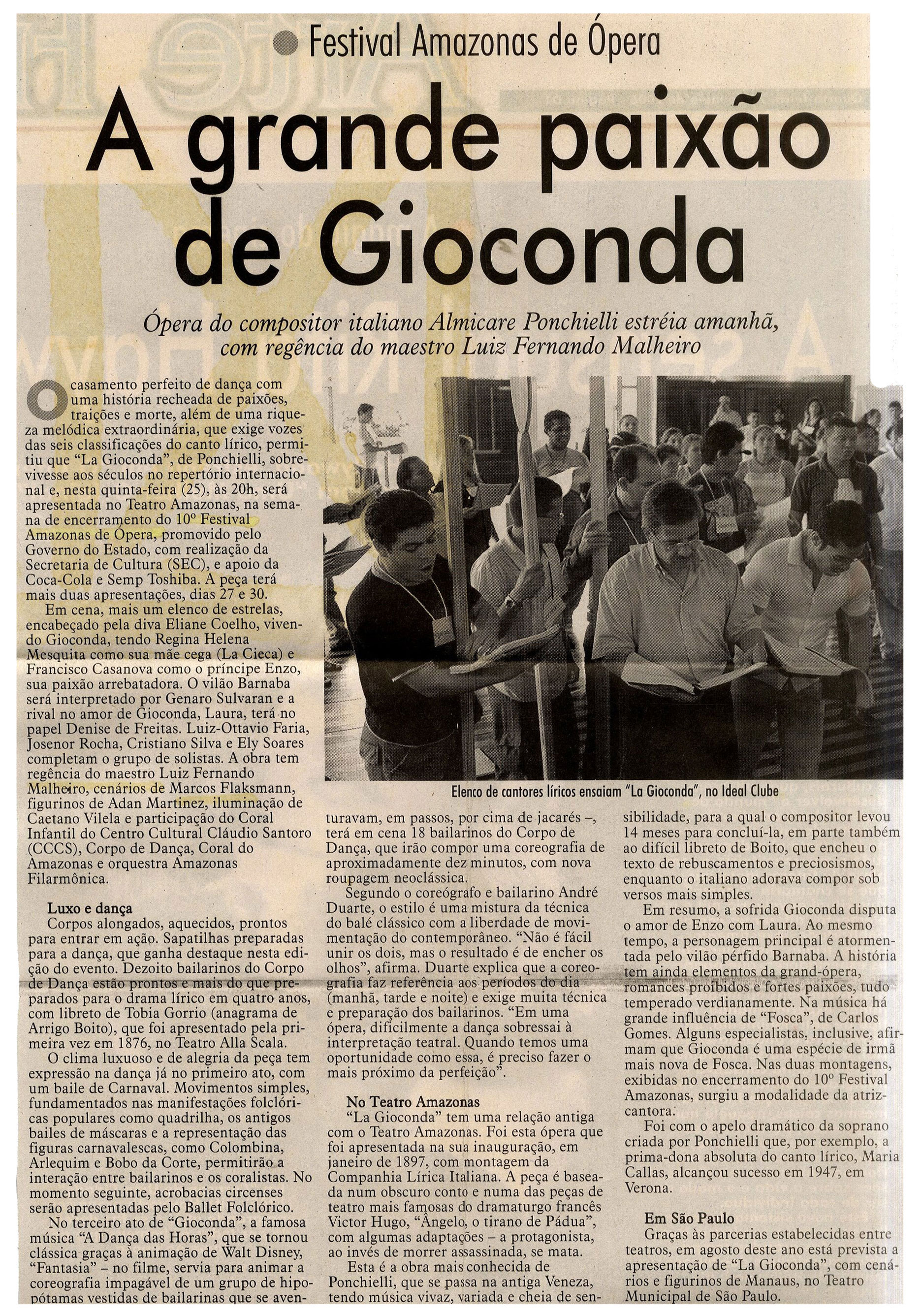 Gioconda, Ópera, Festival, Maestro, Luiz Fernando Malheiro