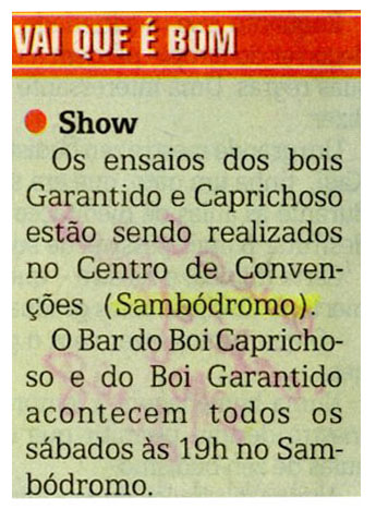 Show, Ensaio, Bois, Garantido, Caprichoso, Sambódromo