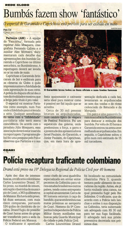 Caprichoso, Garantido, Rede Globo, Bumbódromo, Parintins, Júlio Mosquera, Coari
