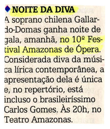 Cristina Gallardo, Festival de Ópera, Música Lírica, Carlos Gomes, Teatro Amazonas