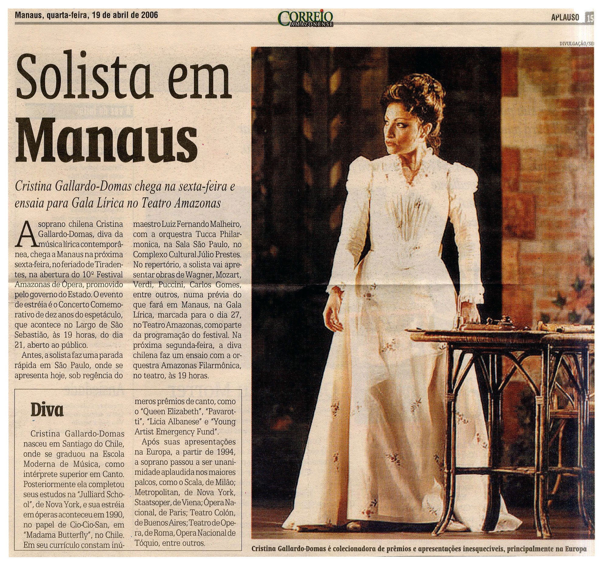 Solista, Cristina Gallardo, Teatro Amazonas, Festival de Ópera, Concerto, Largo São Sebastião