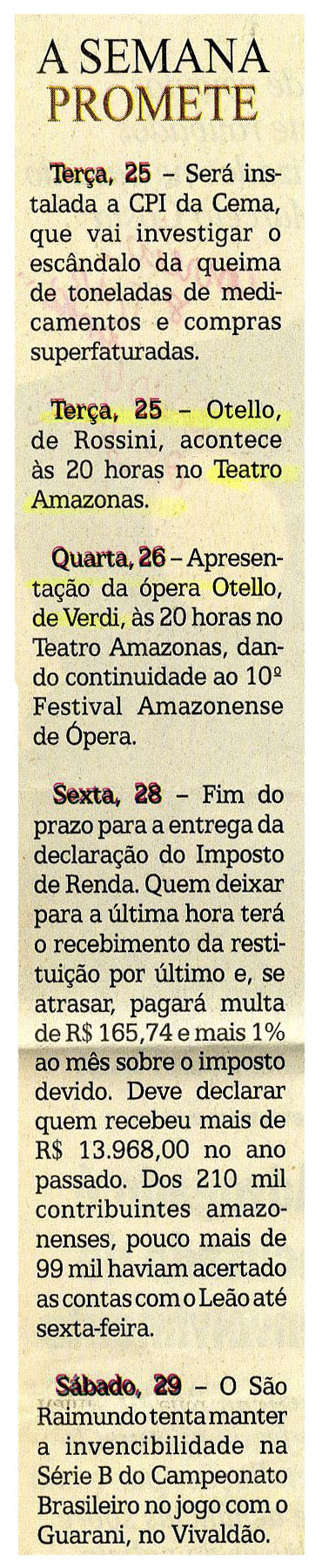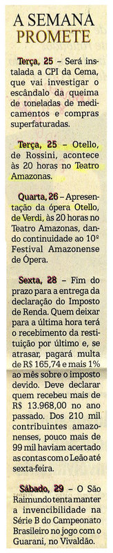 CPI, Teatro Amazonas, Festival de Ópera, Imposto de Renda, São Raimundo