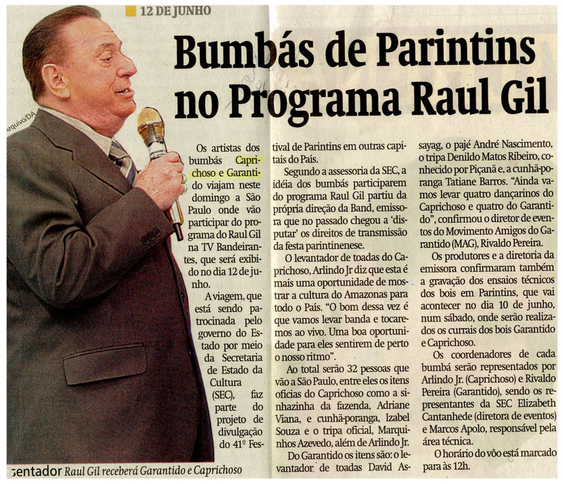 Bumbás, Parintins, Raul Gil, Caprichoso, Garantido, Tv Bandeirantes, Governo do Estado, Sec, Arlindo Jr, Rivaldo Pereira