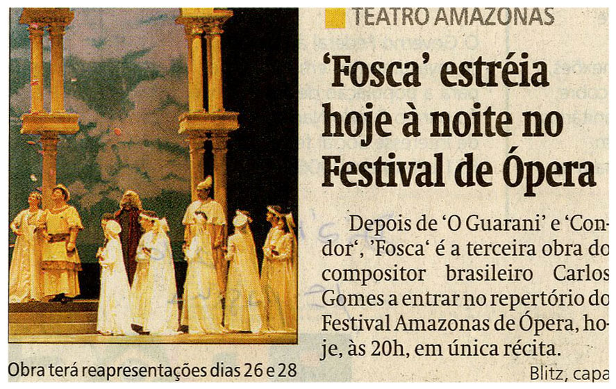 Fosca Estréia Hoje a Noite no Festival de Ópera