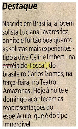 Destaque, Luciana Tavares, Teatro Amazonas, Espetáculo