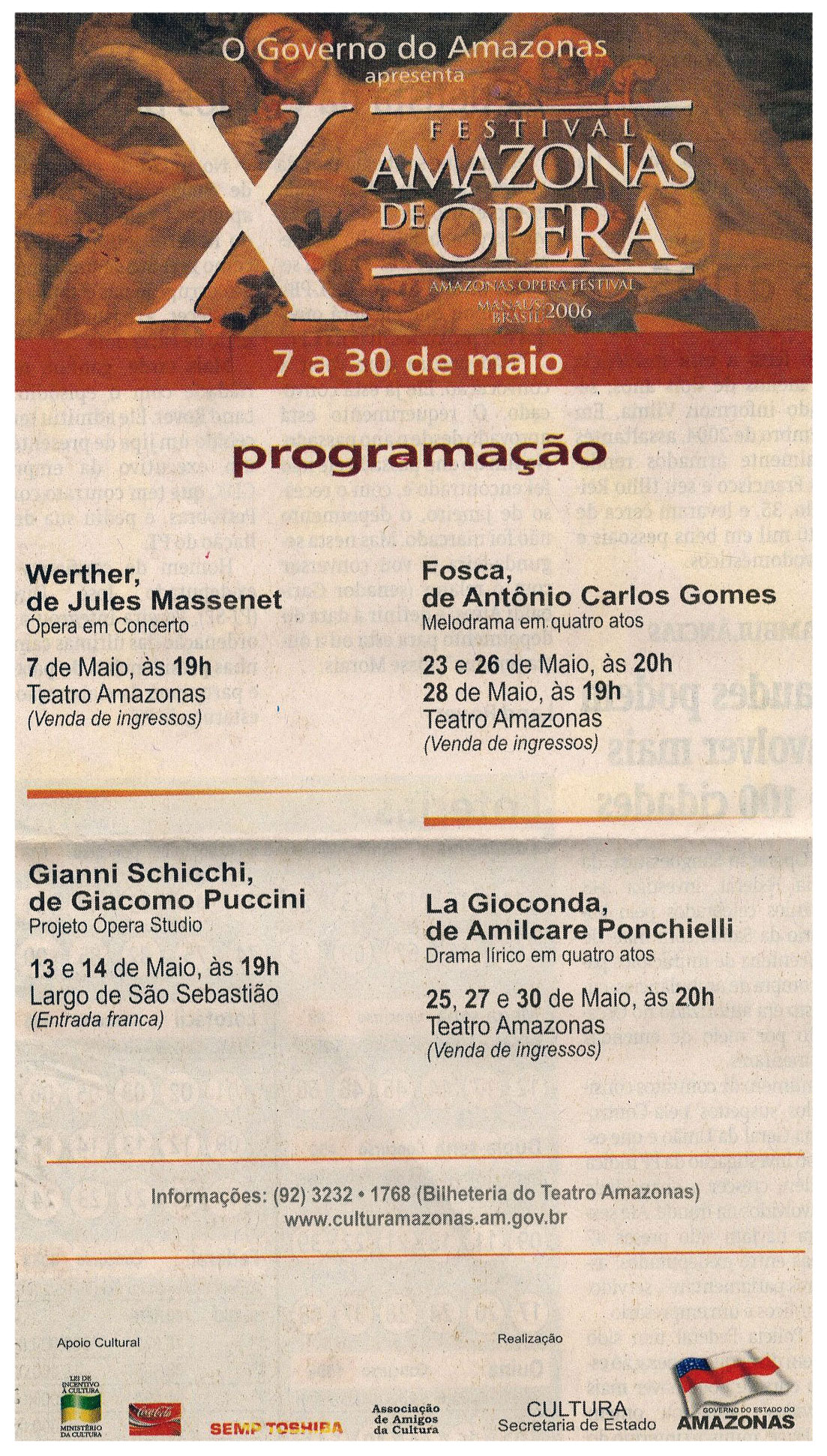 Festival de Ópera, Programação, Governo do Estado, Teatro Amazonas