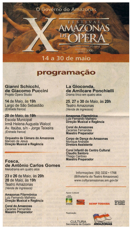 Festival de Ópera, Programação, Governo do Estado, Teatro Amazonas