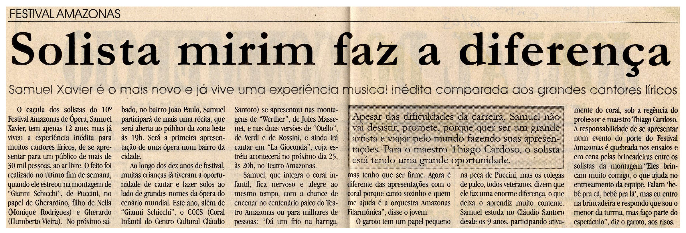 Solista, Samuel Xavier, Festival de Ópera, Bairro João Paulo, Coral Infantil, Centro Cultural Cláudio Santoro, Thiago Cardoso