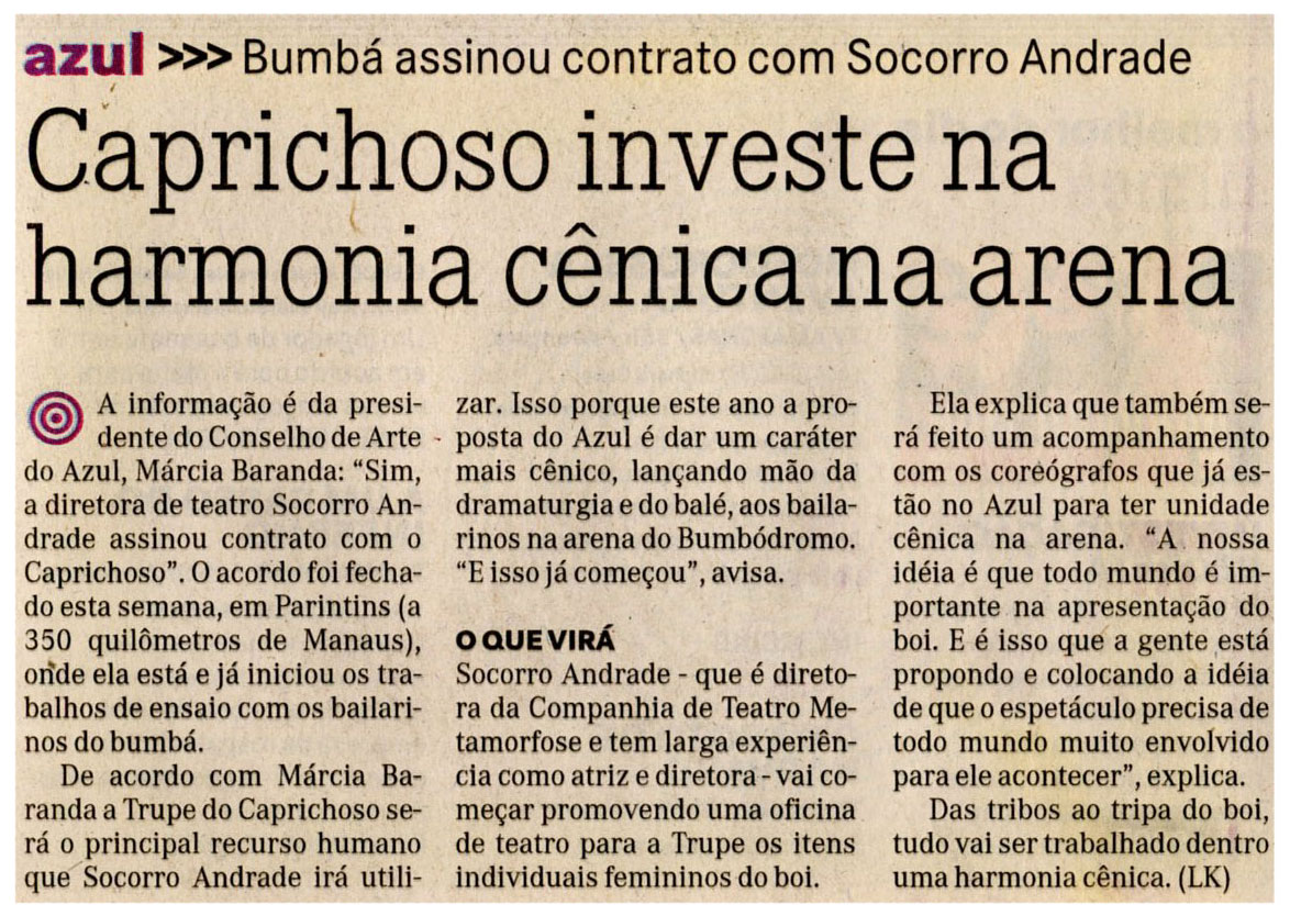 Caprichoso, Azul, Bumbá, Socorro Andrade, Arena