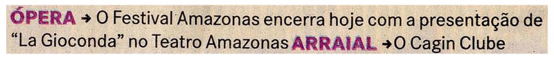 Festival Amazonas de Ópera, Teatro Amazonas, Encerramento, La Gioconda, Arraial, Cagin Clube