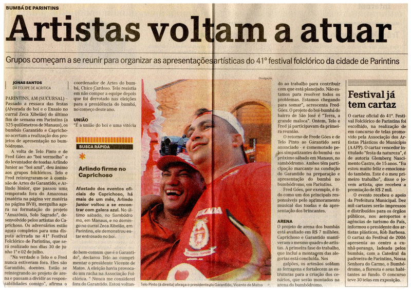Artistas, Festival, Parintins, Arlindo Júnior, Caprichoso, Garantido, Telo Pinto, Vicente de Matos, Fred