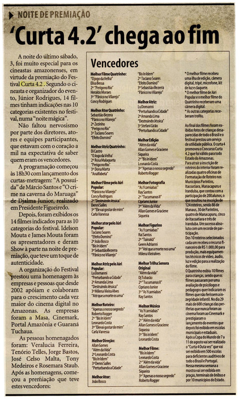 Curta 4.2, Premiação, Cinema, Festival, Masa, Cinemark, Portal Amazônia, Guaraná Tuxaua