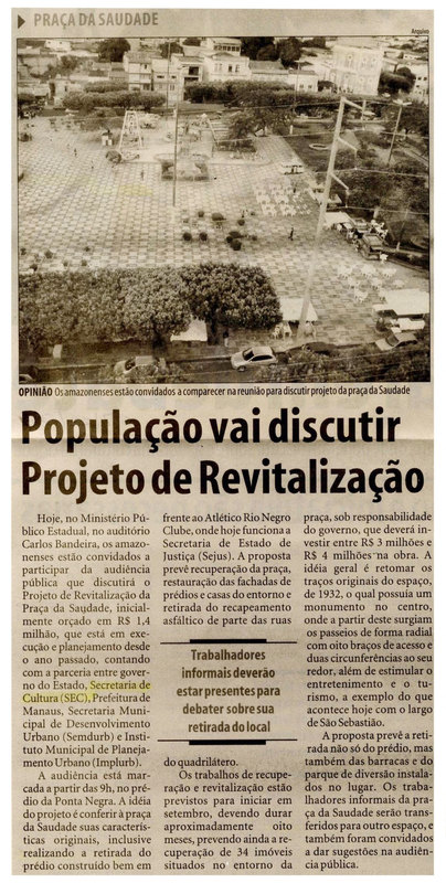 Projeto Revitalização, Sec, Praça da Saudade, Atletico Rio Negro Clube, Sejus, Ponta Negra