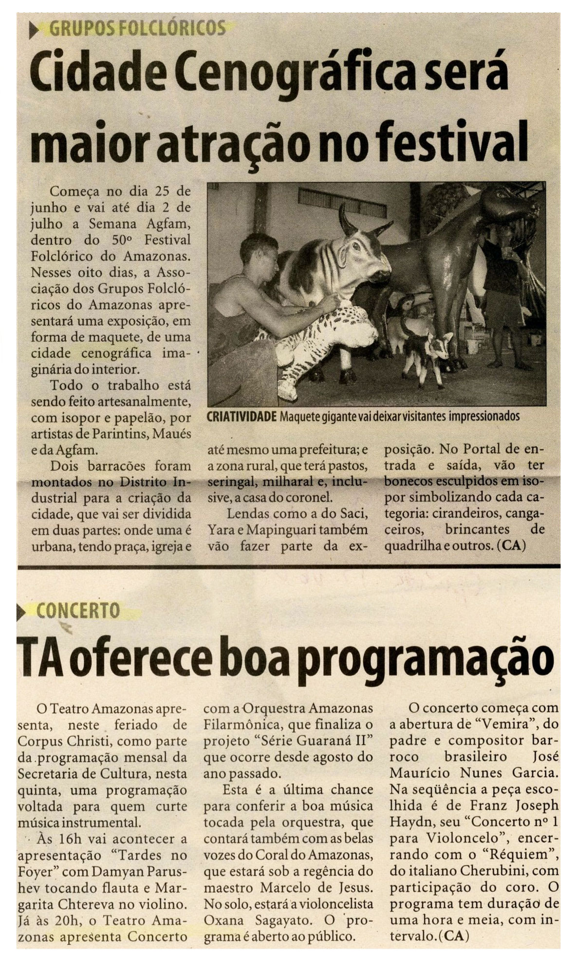 Festival Folclórico do Amazonas, Parintins, Maués, Concerto, Teatro Amazonas, Orquestra Amazonas Filarmônica