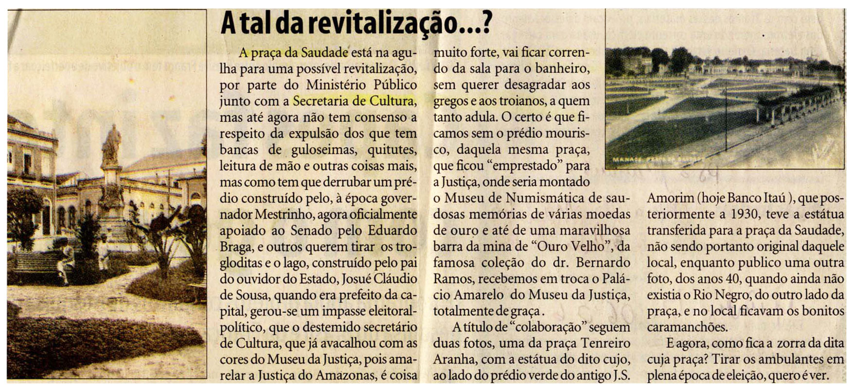 Praça da Saudade, Sec, Eduardo Braga, Revitalização, Rio Negro