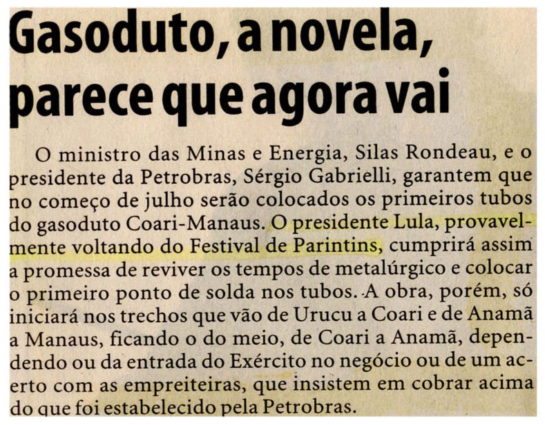Silas Rondeau, Ministro, Sérgio Gabrielli, Gasoduto, Coari, Presidente Lula, Petrobrás