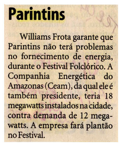 Williams Frota, Parintins, Festival Folclórico, Ceam, Energia