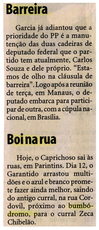 Caprichoso, Parintins, Garantido, Bumbódromo, Garcia Carlos Souza, Manaus, Brasília
