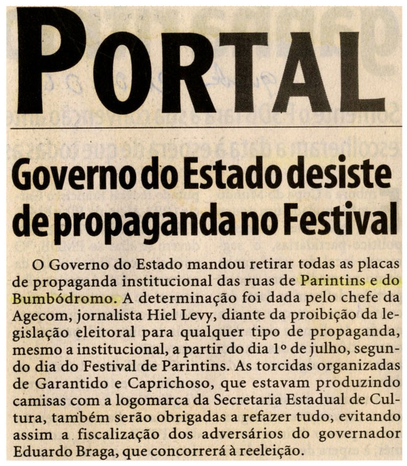 Governo do Estado, Propaganda, Política, Parintins, Festival, Bumbódromo, Garantido, Caprichoso, Eduardo Braga