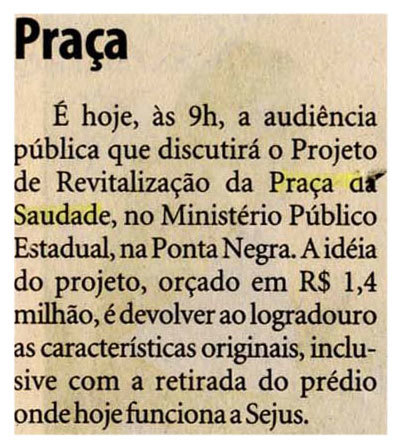 Projeto de Revitalização, Praça da Saudade, Ponta Negra, Sejus