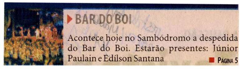 Bar do Boi, Sambódromo, Júnior Paulain, Edilson Santana