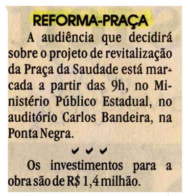 Projeto de Revitalização, Praça da Saudade, Ministério Público Estadual, Investimentos