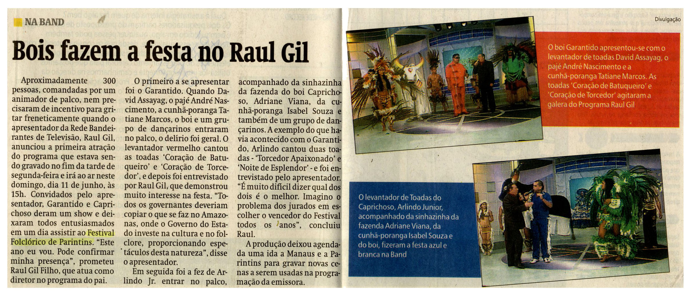 Rede Bandeirantes, Raul Gil, Garantido, Caprichoso, David Assayag, Arlindo Jr