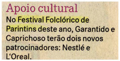 Festival de Parintins, Garantido, Caprichoso, Patrocinadores, Néstle, L'oreal