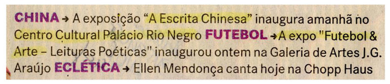 China, Palácio Rio Negro, Exposição, Futebol e Arte, Galeria de Arte J. G Araújo, Ellen Mendonça